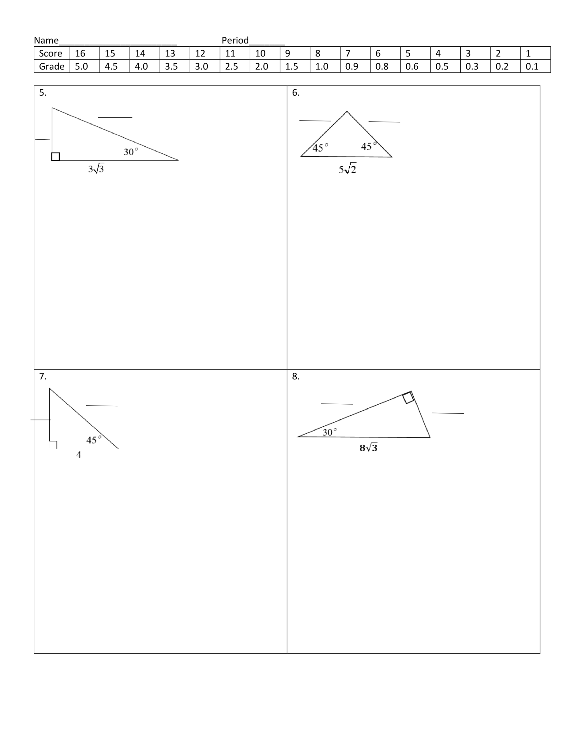 5. Aid in problem-solving: Special right triangle worksheets can help students with problem-solving. By providing practice with the concepts and giving students the opportunity to solve problems, they can gain a better understanding of how to approach and solve real-world problems involving special right triangles.