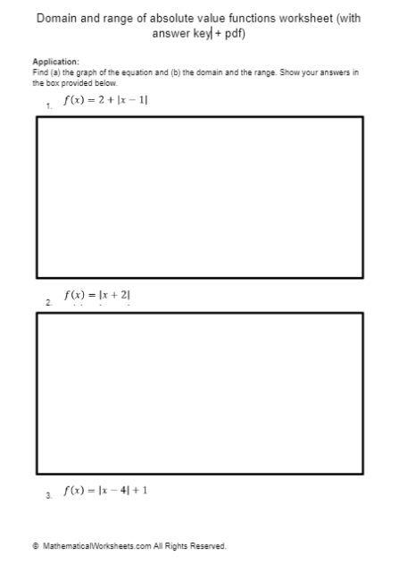 Domain And Range Of Absolute Value Functions Worksheet (With Answer Key + Pdf Throughout Absolute Value Worksheet Pdf