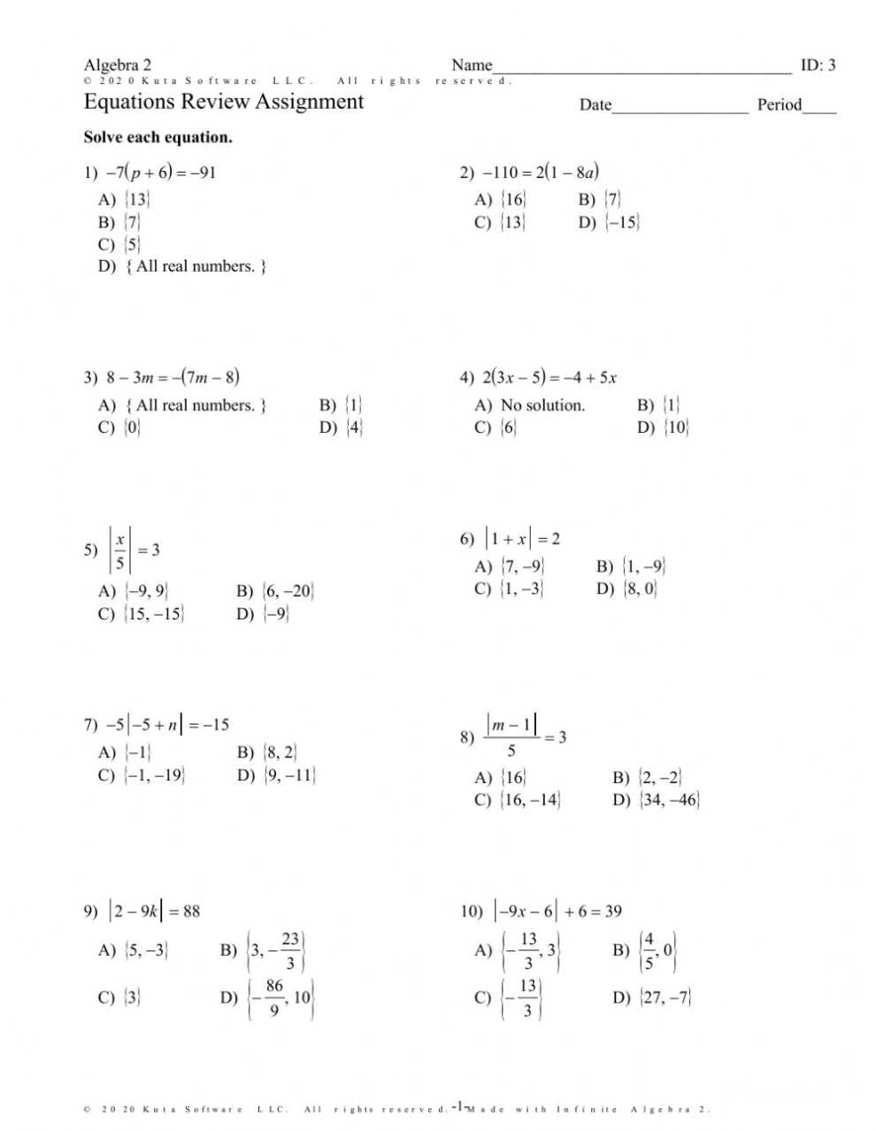 Solving Equations, Inequalities, And Absolute Value Worksheet Within Absolute Value Worksheet Pdf