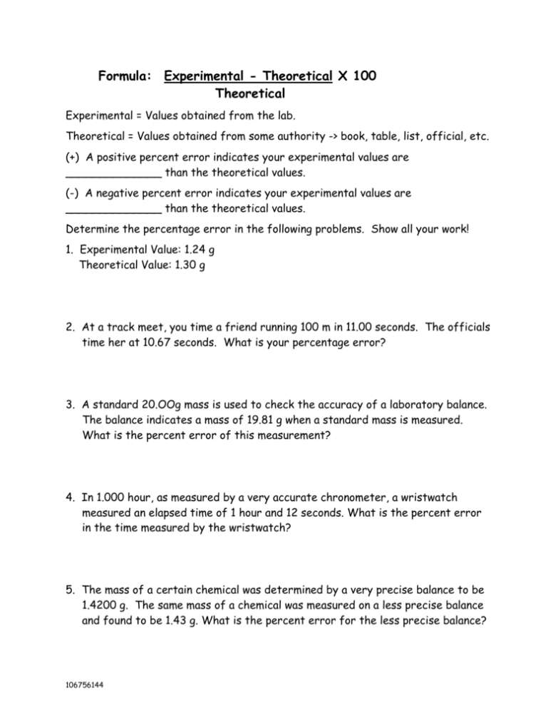 An accuracy and precision worksheet can be used to help you track and measure the accuracy and precision of your experiments and calculations. These worksheets typically include columns for the value of the experiment or calculation, the accepted or true value, the difference between the two, and the percentage of error. By tracking your results on an accuracy and precision worksheet, you can easily measure the accuracy and precision of your experiments and calculations, and make adjustments as necessary to improve your results.