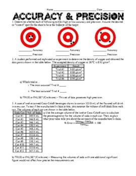 In addition, accuracy and precision worksheets can be used to reinforce concepts already taught in class. By completing practice problems and quizzes, students can review and master the concepts they have learned. This can help them to remember the details when they go to apply the concepts in future problems.