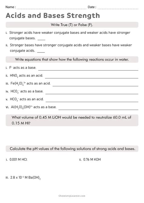 Balancing chemical equations involving acids and bases can be a challenging task. However, by utilizing a worksheet approach, learners can become comfortable with this important concept.
