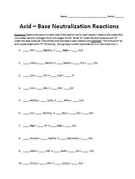 Understanding the Chemistry of Acid-Base Reactions with an Acid-Base Reaction Worksheet