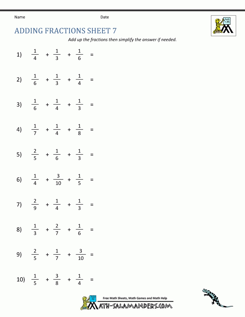 Adding Fractions Worksheet Pdf