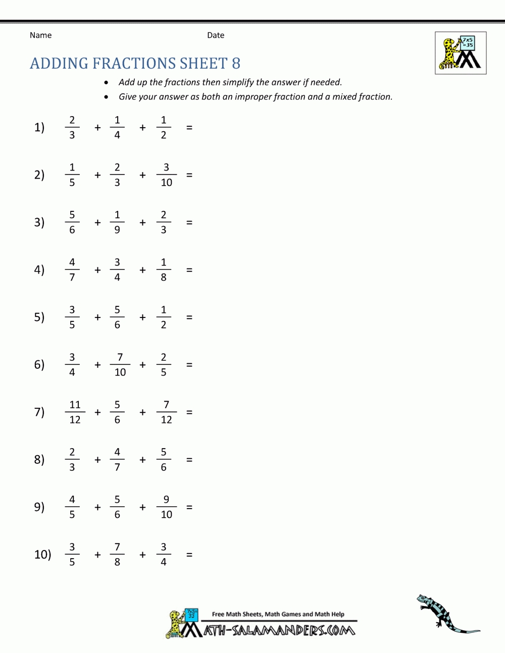 5 photos of the "Adding Mixed Numbers Worksheet"