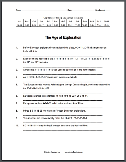 Uncovering the Historical Significance of the Age of Exploration Worksheet