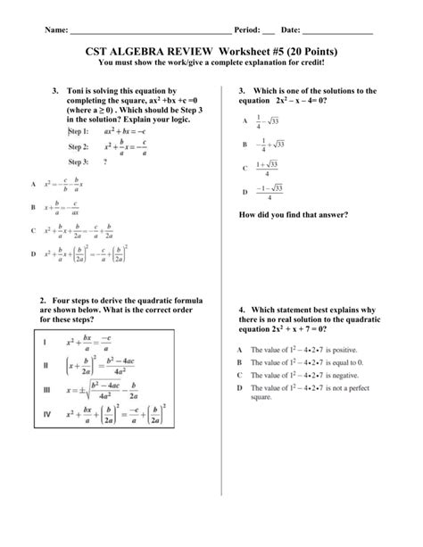 Cst Algebra Review Worksheet #1 (20 Points) Pertaining To Algebra 1 Review Worksheet