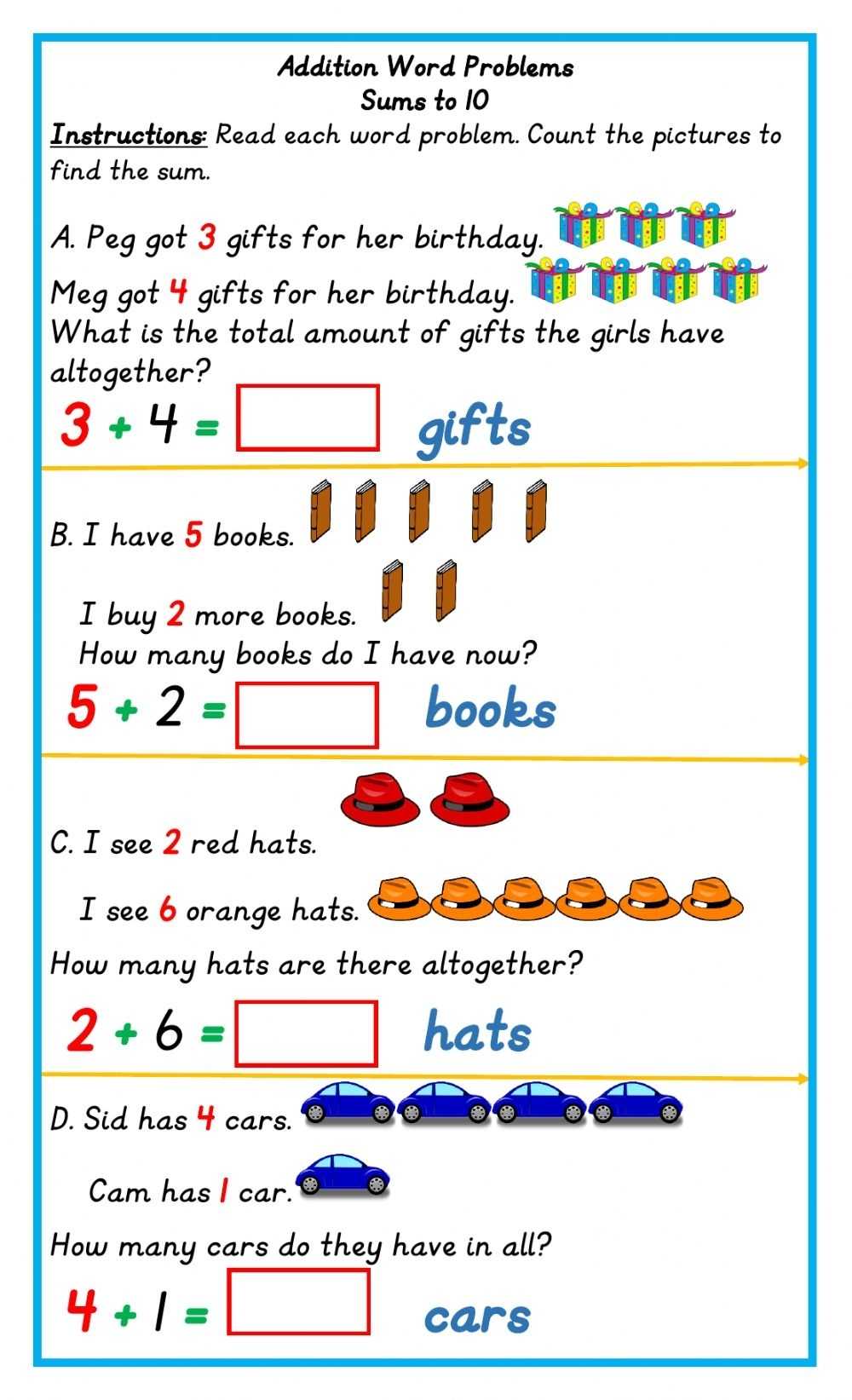 Addition Word Problems Online Activity For Grade 1 For Algebra 1 Word Problems Worksheet