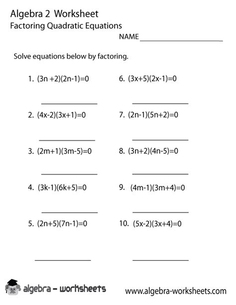 The benefits of using algebra 2 factoring worksheets are numerous. They allow students to review and practice their skills in factoring, as well as gain a better understanding of the concept. The worksheets can also be used to supplement other algebra 2 learning materials, such as textbooks or online resources. Additionally, they can help students to prepare for tests and exams, as well as help them to develop their problem-solving skills.