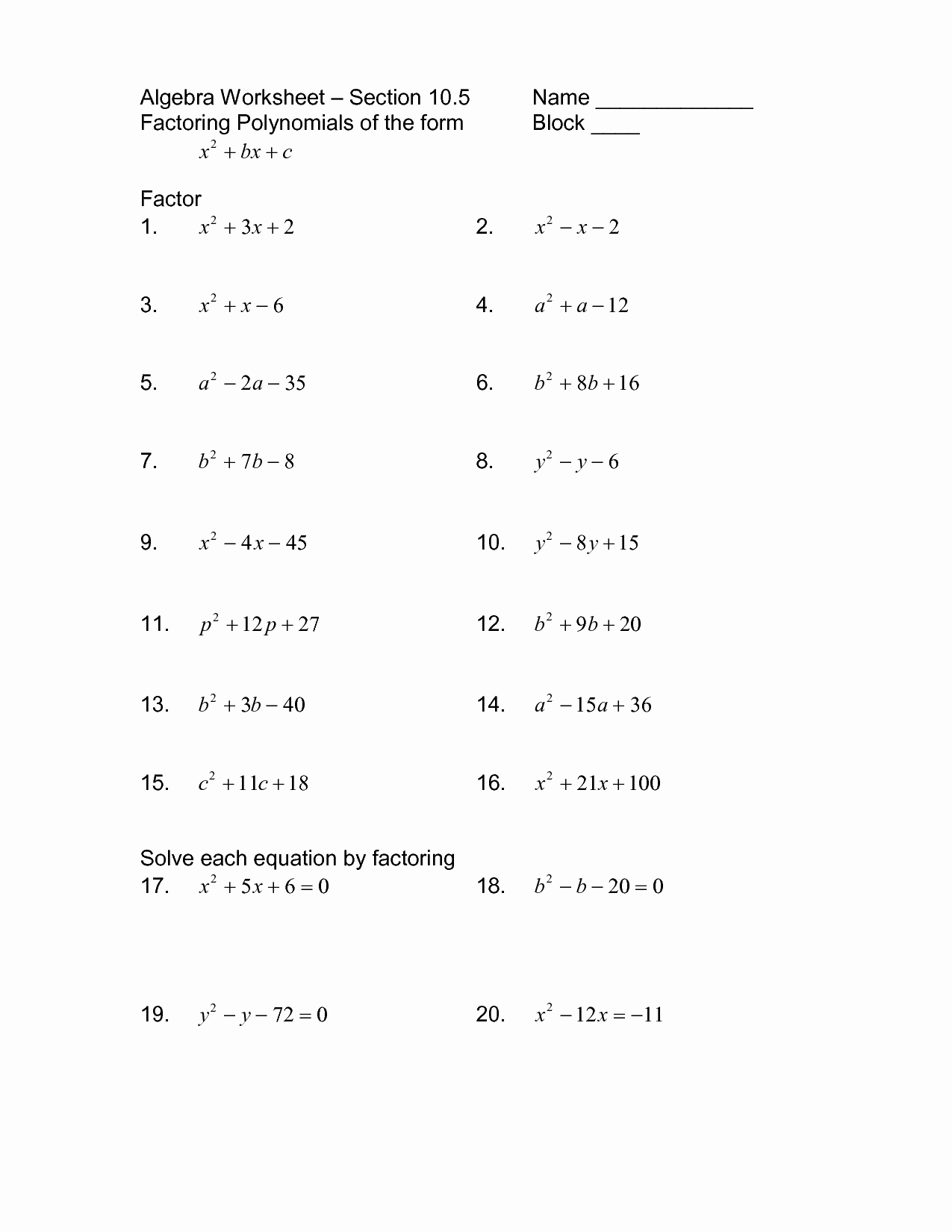Factoring Polynomials Worksheet With Answers Algebra 2 — Db Excel Inside Algebra 2 Factoring Worksheet