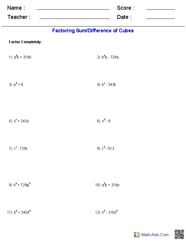The second type of worksheet is a more advanced factoring worksheet. These worksheets are generally more complex than the basic worksheets. They may include more complex problems that require students to factor more than one polynomial or to solve equations involving factoring.