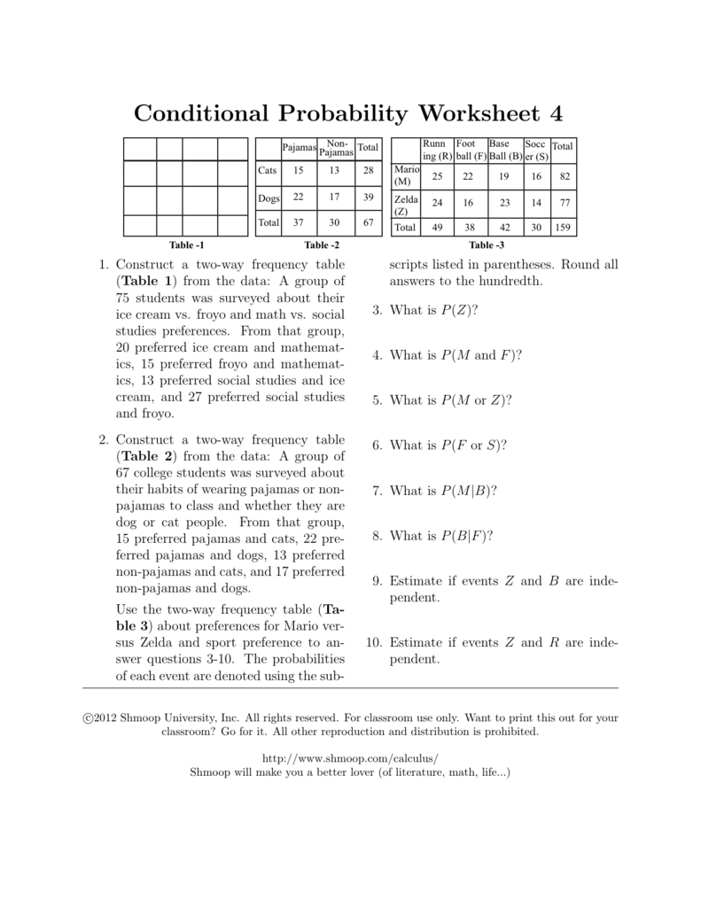 Conditional Probability Worksheet 4 Throughout Algebra 2 Probability Worksheet