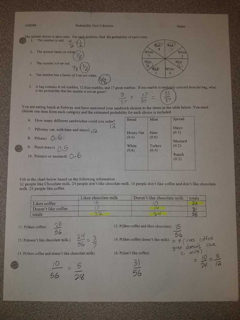Probability Quiz 2 Review - Ms. Harrison'S Math Pages Within Algebra 2 Probability Worksheet