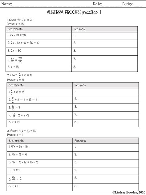 In addition, algebraic proofs worksheets can help to develop critical thinking skills. By learning how to analyze a given set of statements and deduce the correct conclusion, students can gain a better understanding of how to approach complex math problems. This can be especially helpful for students who are preparing to take standardized tests, such as the SAT or ACT.