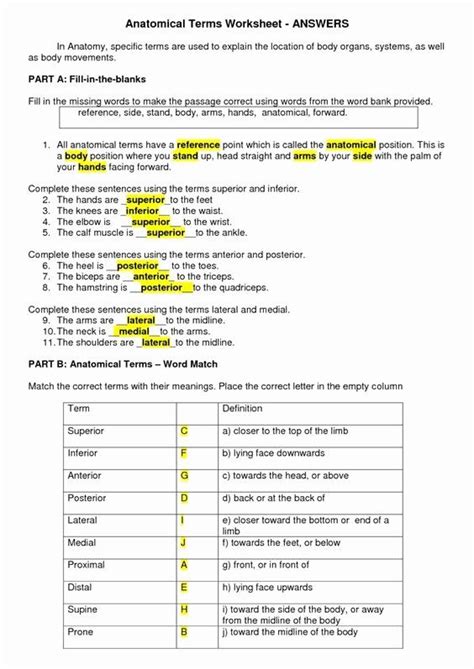 How to Use Anatomical Terms Worksheet Answers to Further Your Medical Studies