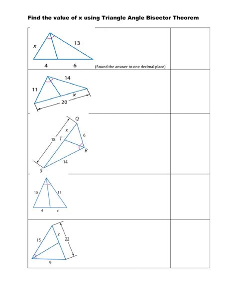 The Angle Bisector Theorem worksheet is a powerful tool for students studying geometry. It can be used to solve a variety of problems, from finding the angle of a triangle to calculating the area of a circle. By using this worksheet, students can easily understand and apply the theorem.
