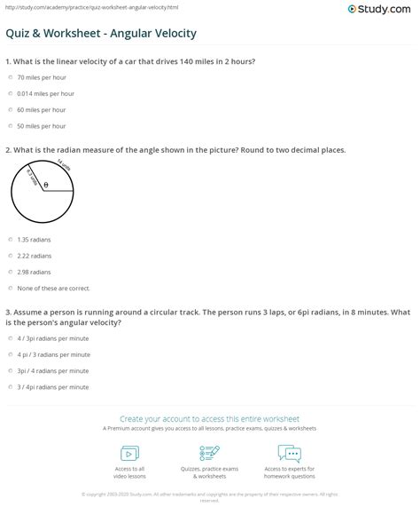 Angular And Linear Velocity Worksheet