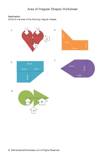 Area of irregular shapes worksheets are also beneficial in helping students practice applying the math concepts they have learned. By providing a variety of different shapes and sizes, students are able to apply their knowledge of area and perimeter to the worksheets. This allows them to practice the skills they have learned and utilize them in other areas of math.