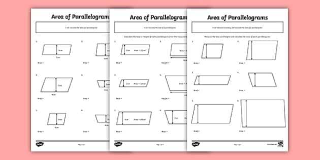 Worksheets can be used to help students practice calculating the area of a parallelogram. They can be used to introduce the concept, to reinforce the concept, or to provide practice problems. Each worksheet should contain a set of problems that can be solved using the formula for calculating the area of a parallelogram. The problems should be designed to be progressively more difficult as the student works through them.