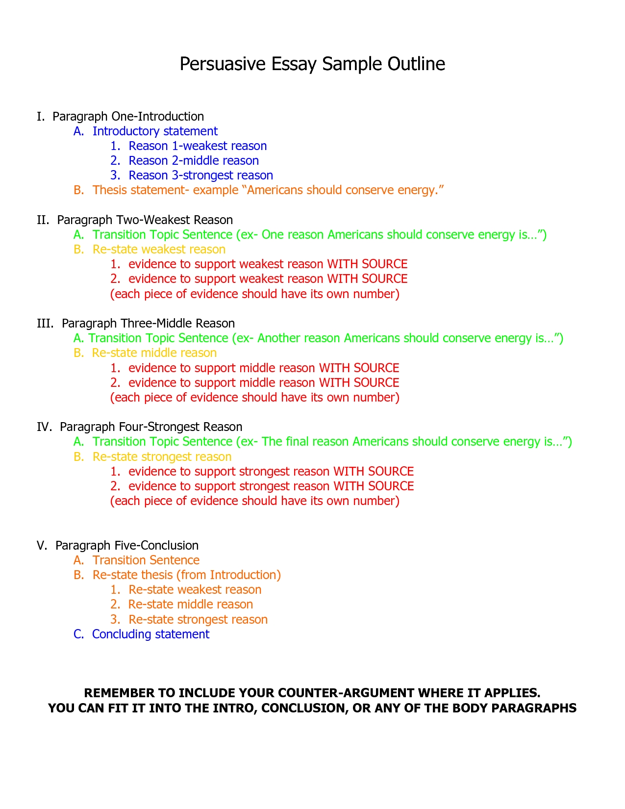 3. Identify potential counterarguments. An argumentative essay outline worksheet can also help students to identify potential counterarguments they may face. This can help them anticipate and prepare for potential objections, and can make their argument more persuasive.