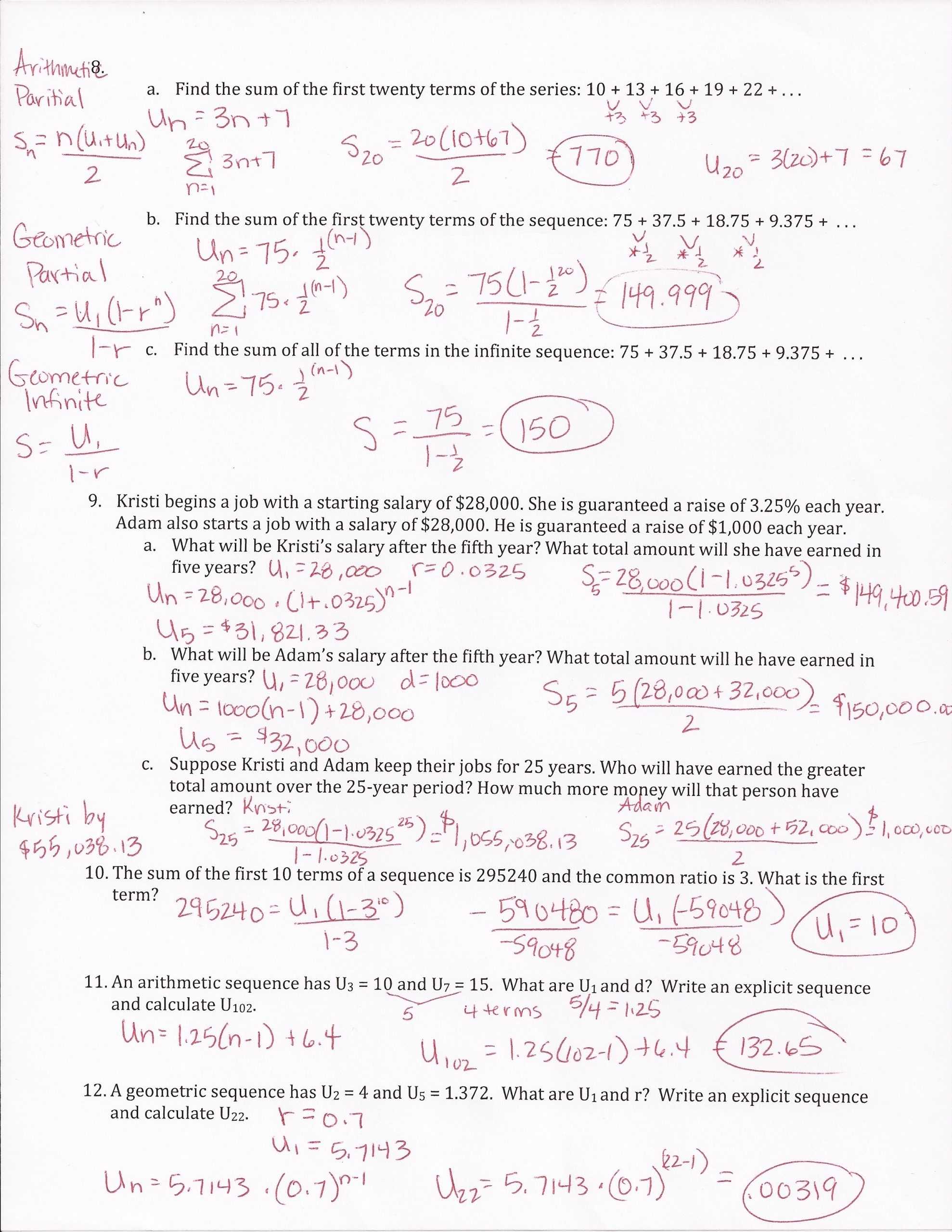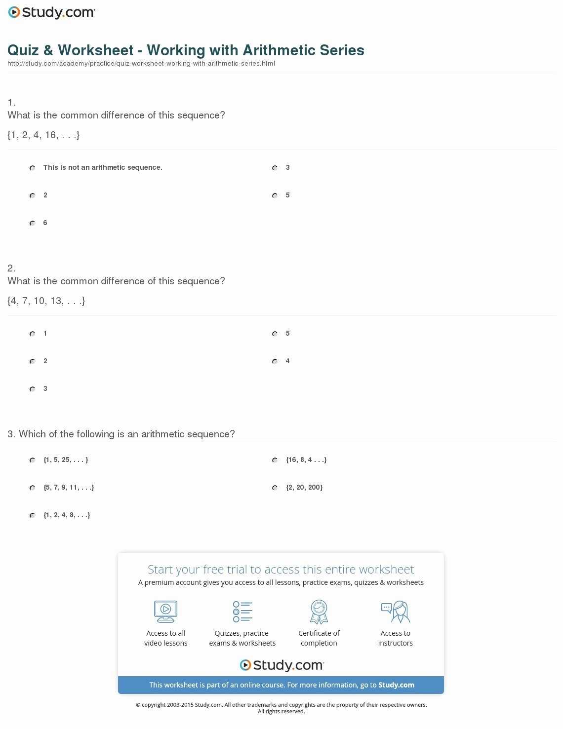 5 photos of the "Arithmetic Sequence Worksheet Answers"