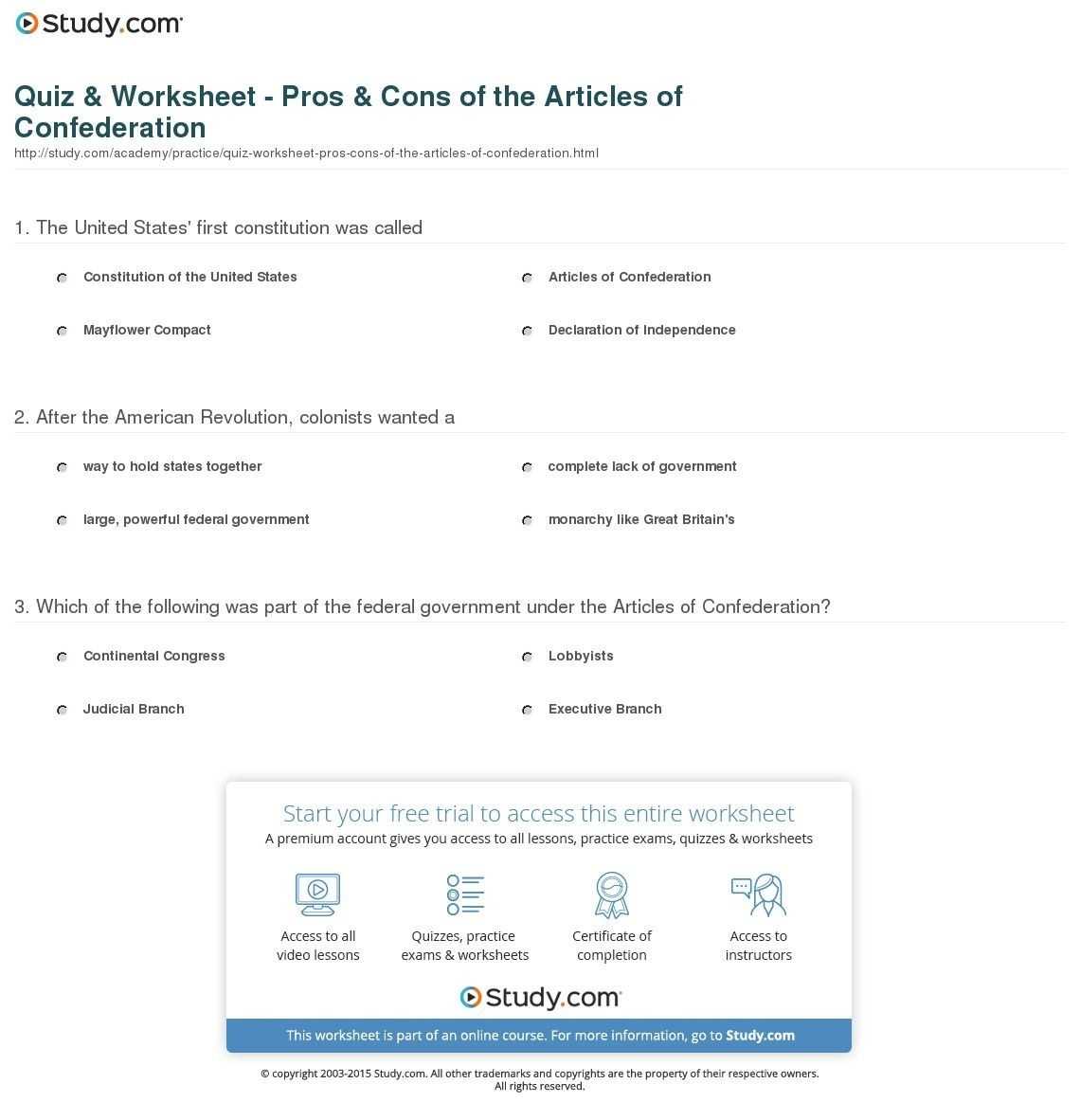 Exploring the Pros and Cons of the Articles of Confederation Worksheet