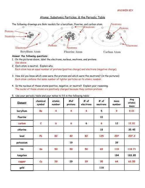 The atomic structure worksheet answers key provides an organized and comprehensive overview of the concepts associated with atomic structure. It begins with a definition of an atom, highlighting its positive and negative charges and its nucleus. It then moves on to discuss the different types of subatomic particles, such as protons, neutrons, and electrons, and the roles they play in an atom. It also explains the atomic number, isotopes, and atomic orbitals.