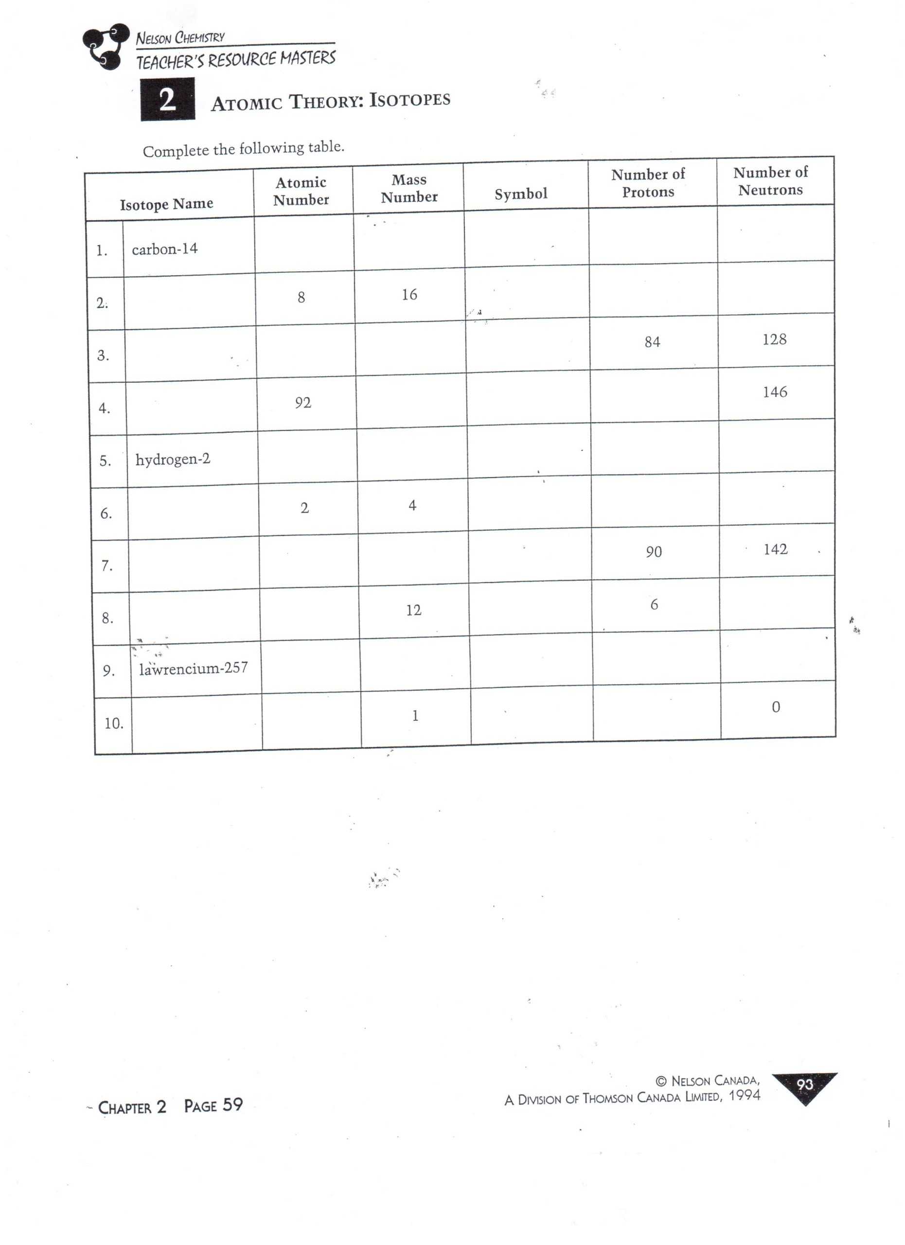 When using the worksheet, it is important to explain to students the basics of atoms and isotopes. Explain that atoms are the building blocks of all matter and that isotopes are atoms of the same element with different numbers of neutrons. Then, provide a list of elements with their atomic numbers and masses.