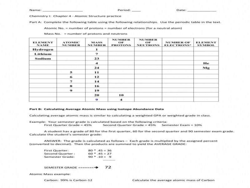 Calculating Average Atomic Mass Worksheet Name Pertaining To Average Atomic Mass Worksheet Answers