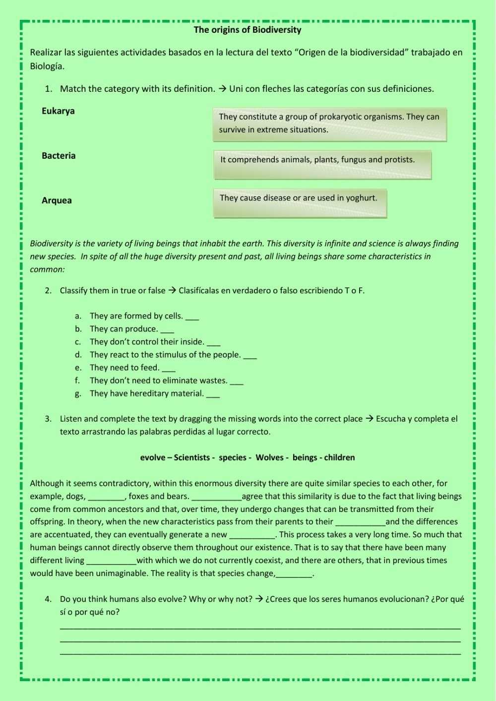 In the worksheet, the importance of protecting and promoting biodiversity is highlighted. The interactive elements of the worksheet allow students to think critically about the various aspects of biodiversity and their impact on the environment. It also provides a platform for students to share their ideas, insights, and experiences on biodiversity. Additionally, the worksheet helps students to understand the implications of biodiversity loss and the importance of conserving and restoring biodiversity.
