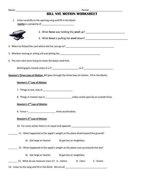 By working through Bill Nye’s Motion Worksheet, one can gain a comprehensive understanding of the law of motion and its applications in the real world. With detailed explanations and sample calculations, this worksheet provides a comprehensive guide to understanding the law of motion.