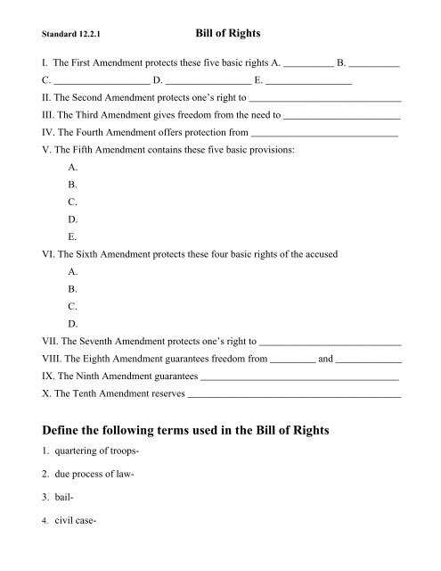 Bill Of Rights Worksheet High School Within Bill Of Rights Worksheet