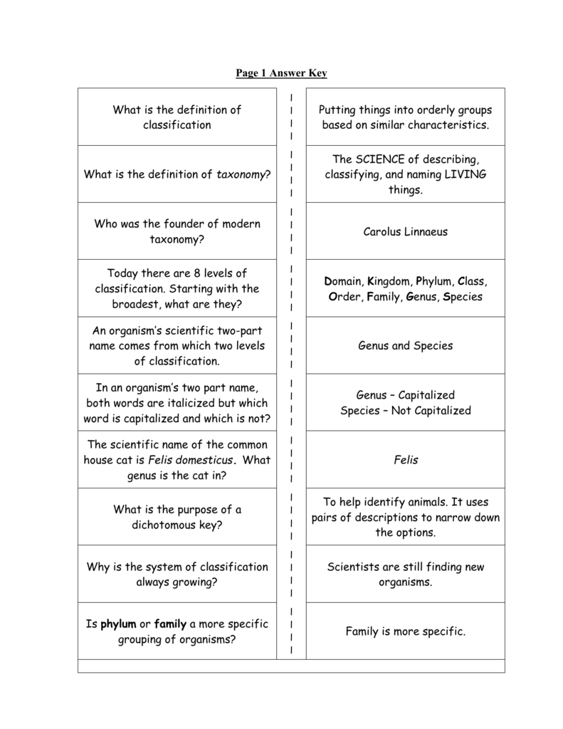 Biological Classification Worksheet Answer Key Pertaining To Biological Classification Worksheet Answer Key