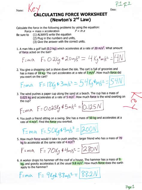 Calculating force worksheet answers are essential tools for students of physics and related disciplines. They help students to better understand the fundamental concepts of force, motion, and energy. By providing students with a set of questions and answers, they can develop their knowledge and skills in the subject.