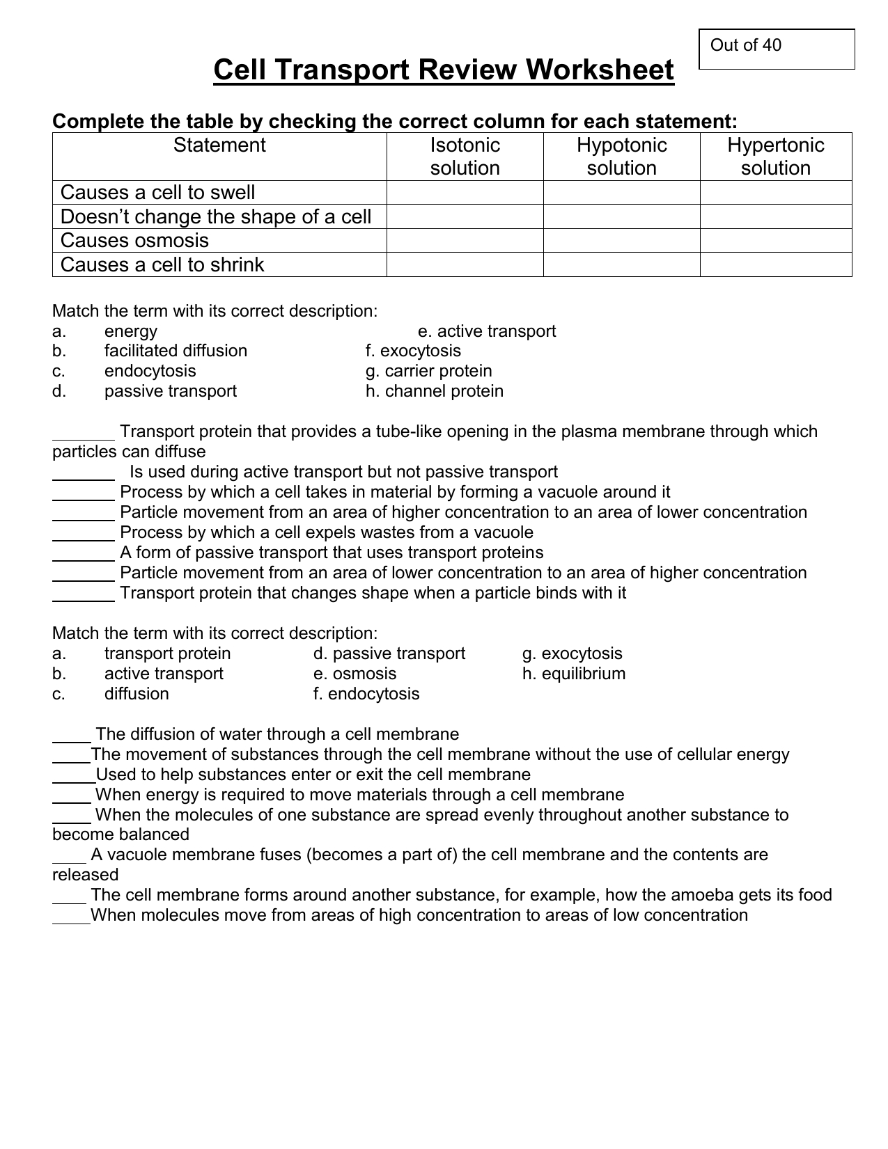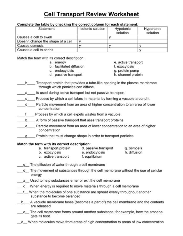 Cell Transport Review Worksheet In Cell Transport Review Worksheet