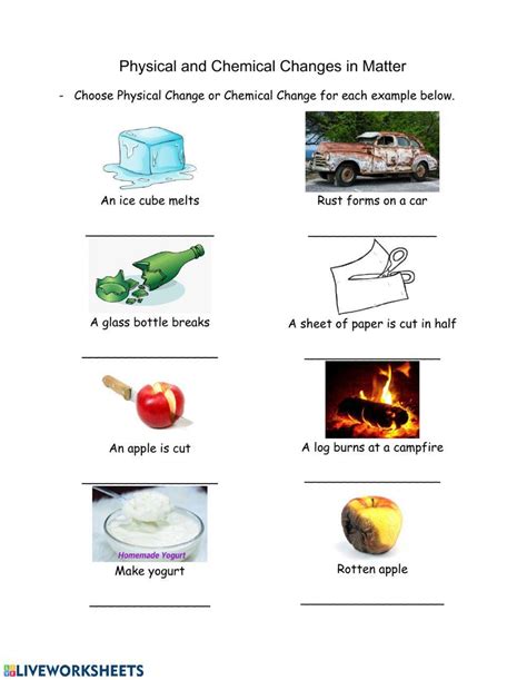 The changes in matter worksheet can also be used to explore the effects of temperature, pressure, and time on a reaction. By manipulating these variables, students can gain a better understanding of the underlying chemistry behind changes in matter.