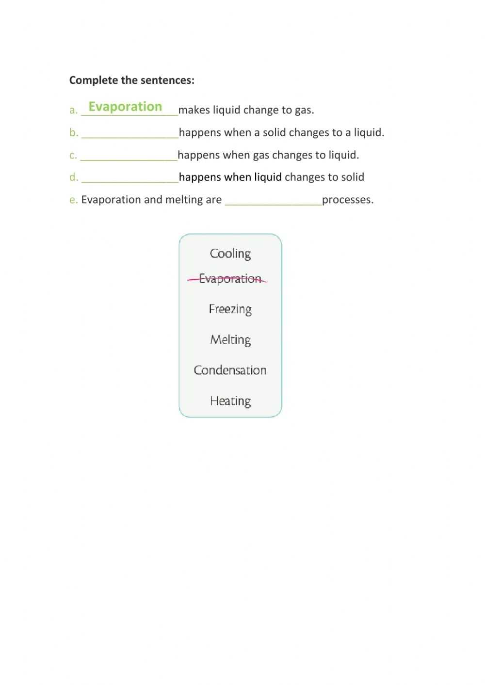 Using the Changes in Matter Worksheet