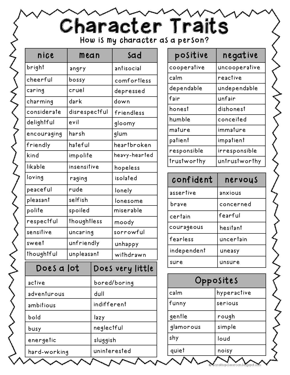 Workshop Classroom: Teaching About Character Traits For Character Traits Worksheet 3Rd Grade