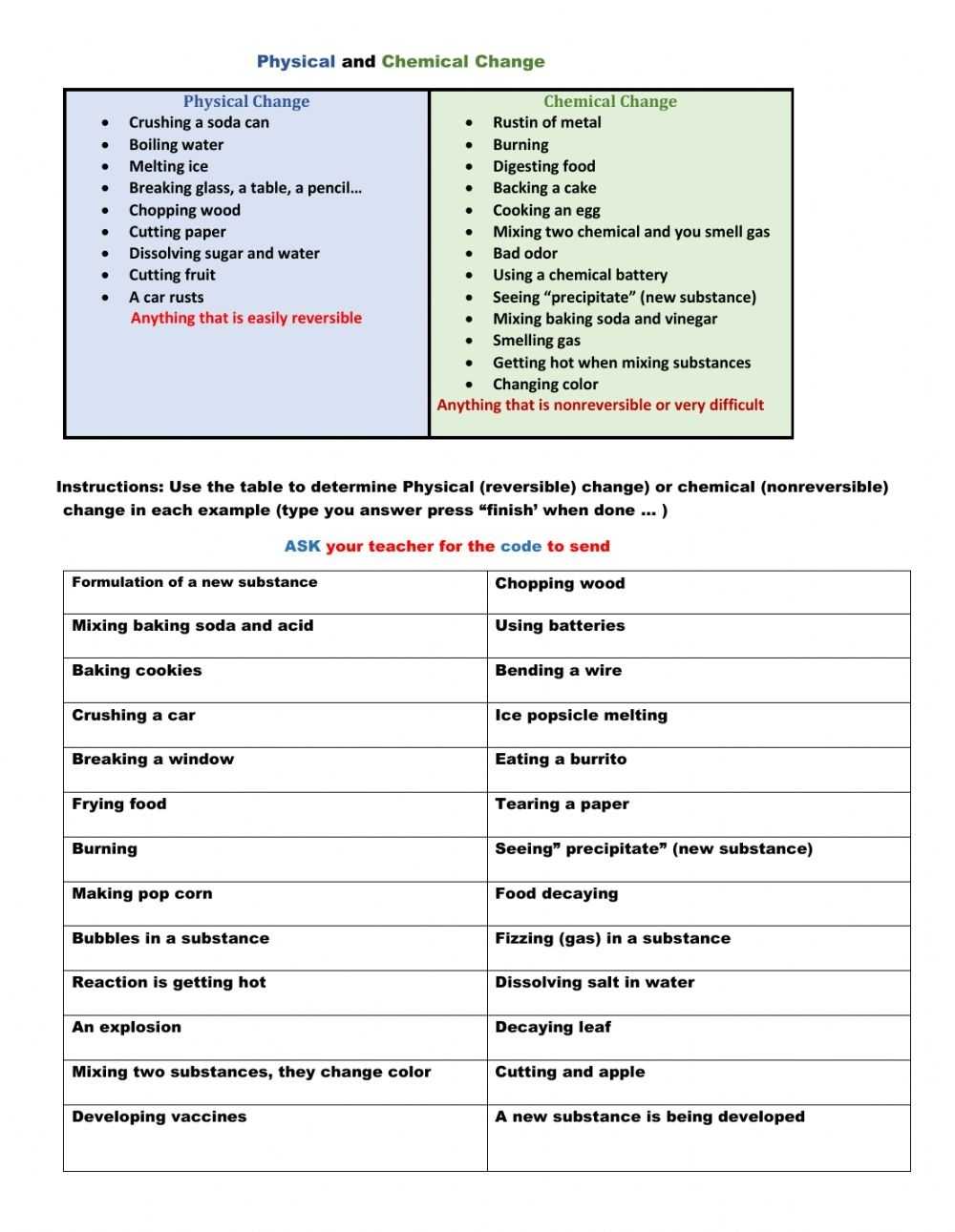 The worksheet is designed to help students develop a better understanding of the processes involved in each type of change. By completing the activities, students can gain a better appreciation of the differences between chemical and physical changes and how they interact with each other. This understanding can help them to better understand the overall process of change.