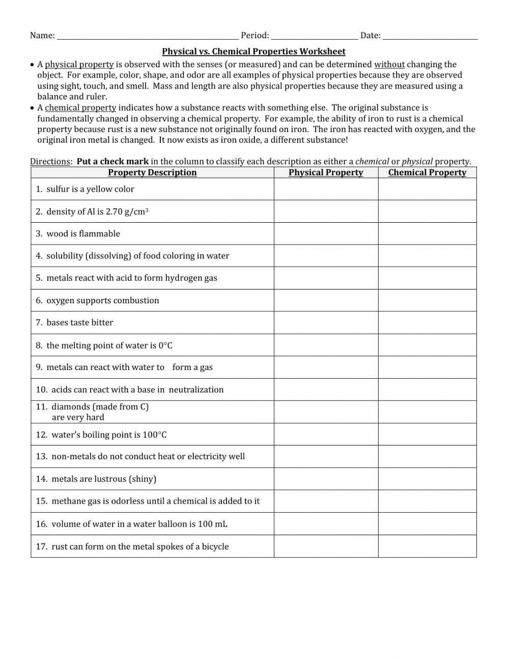Exploring the Properties of Chemical and Physical Changes with a Worksheet