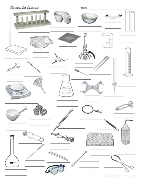 By completing this worksheet, students will gain a better understanding of the various pieces of equipment and chemicals used in a chemistry lab. They will also learn the importance of following safety protocols when using any of these items.