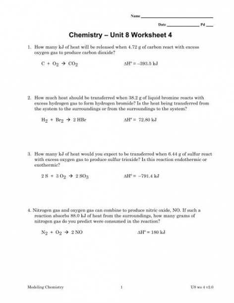 Analyzing the Chemical Reactions Involved in Chemistry Worksheet Matter 1 Answers