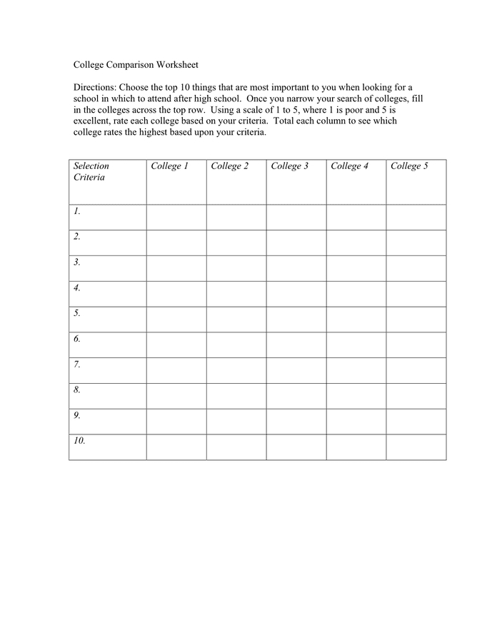 College Comparison Worksheet In Word And Pdf Formats With Regard To Choosing A College Worksheet