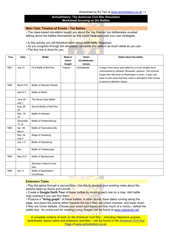 How to Create an Accurate Civil War Timeline Worksheet for Your Classroom