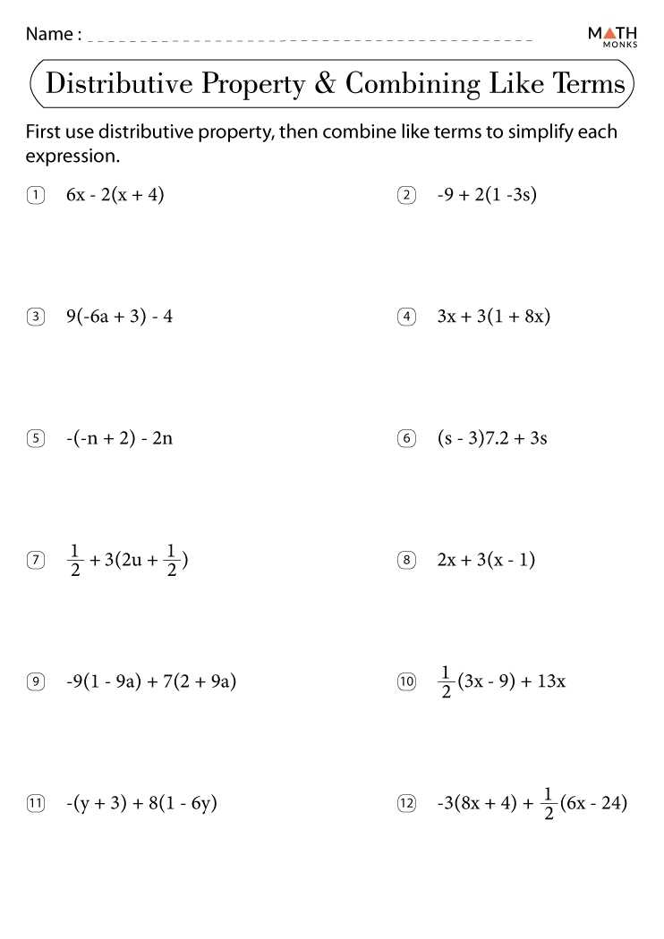 Once you have a good understanding of like terms, you can start to use the practice worksheet. The worksheet will typically provide a set of equations that contain like terms. Your goal is to simplify the expressions by combining the like terms. To do this, you will need to use the distributive property and the rules of exponents.