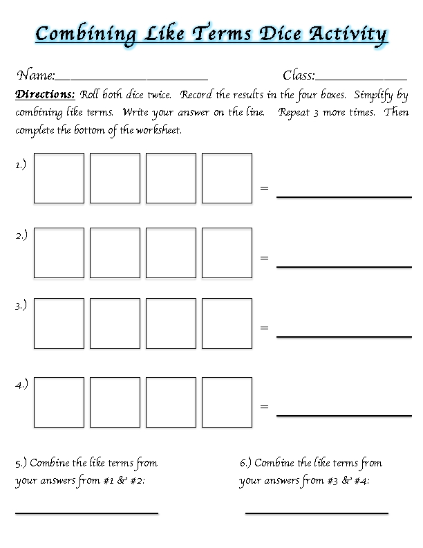 Combining Like Terms Practice Worksheet