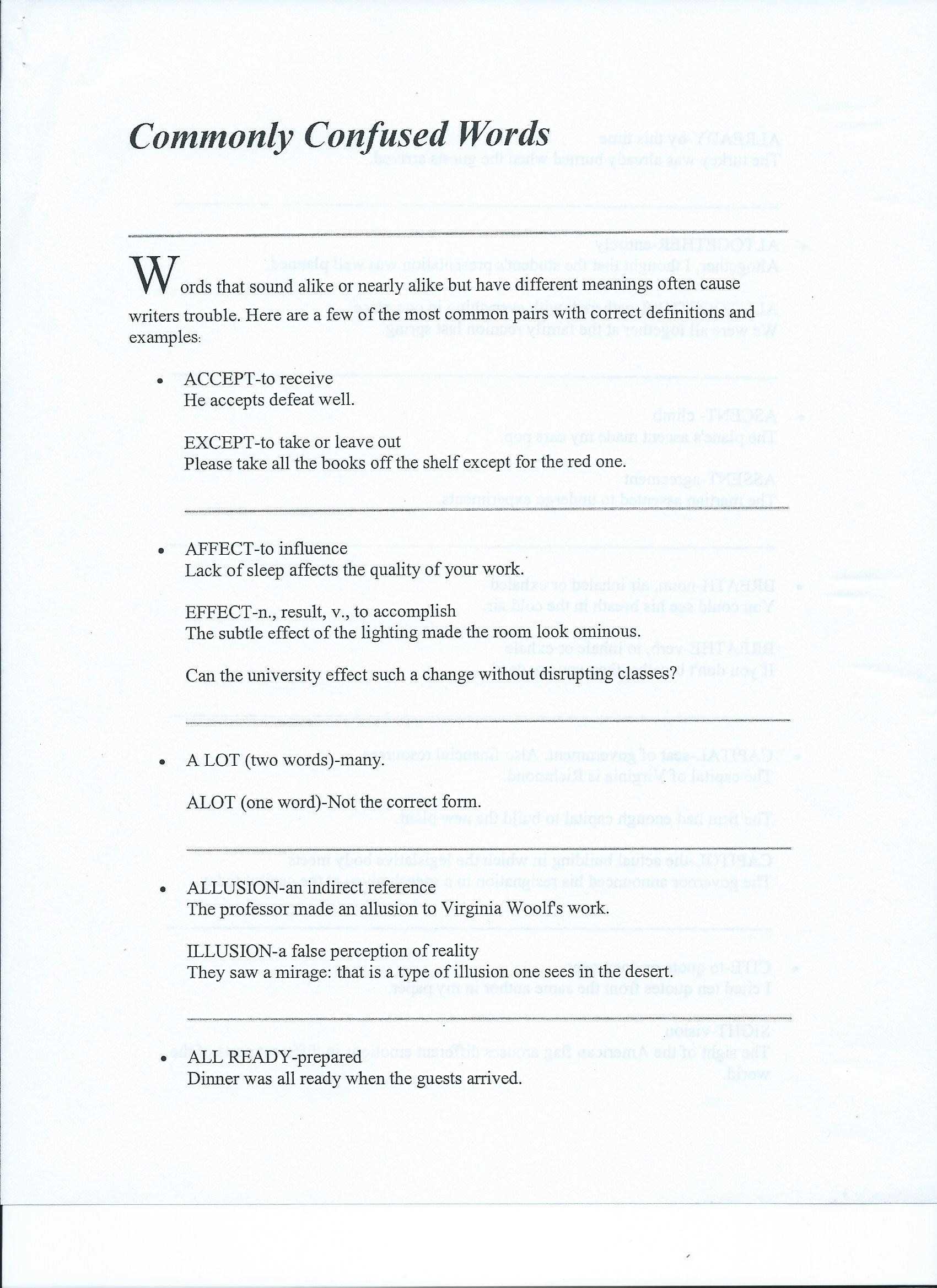 Additionally, a commonly confused words worksheet can be used to prevent the misuse of words in the first place. This can be done by having the writer review the list of commonly confused words before beginning their writing task. This can help them to become more familiar with the correct terms and ensure that they are using them properly.