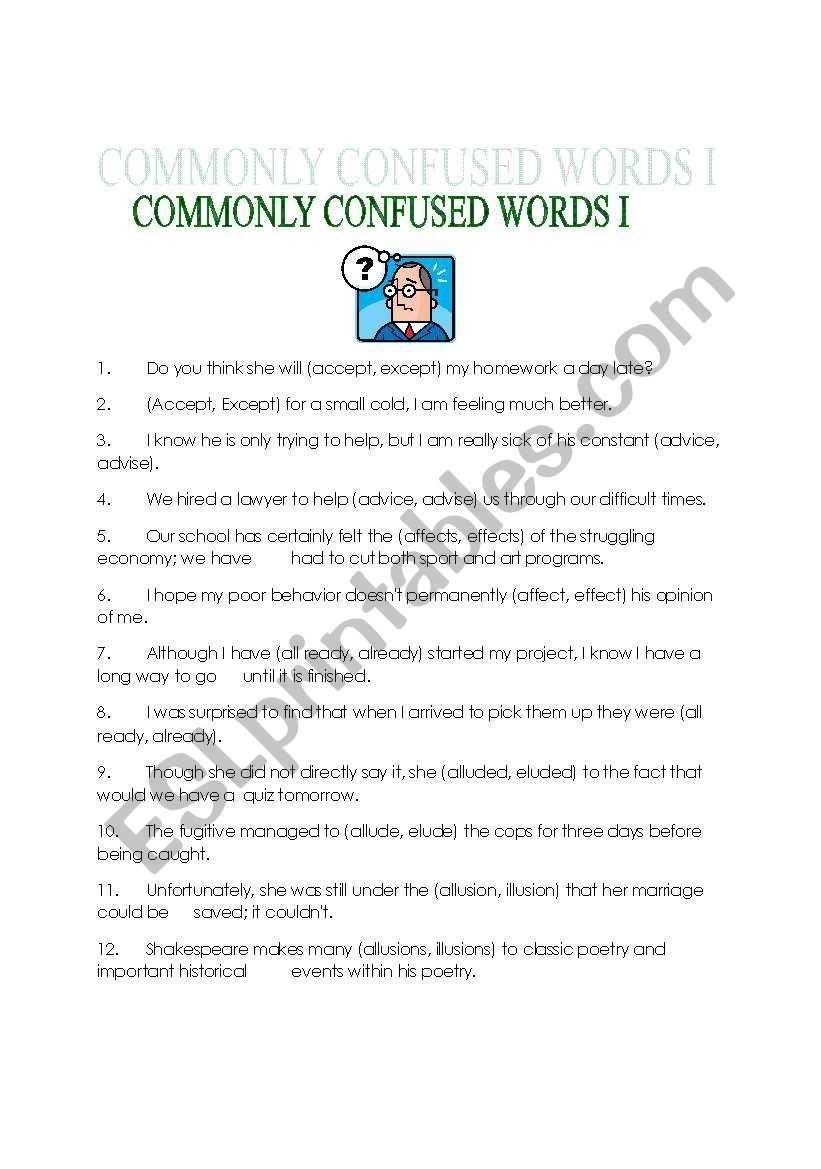 The ability to differentiate between commonly confused words is a crucial skill for effective communication. Incorrectly using words that are often mistaken for one another can lead to misinterpretation and confusion. This comprehensive commonly confused words worksheet is designed to help learners gain a better understanding of the distinctions between commonly confused words and to improve their usage of them.