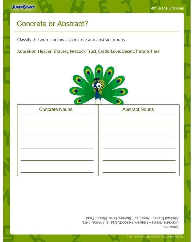 Utilizing Concrete And Abstract Nouns Worksheets To Develop Grammar Skills