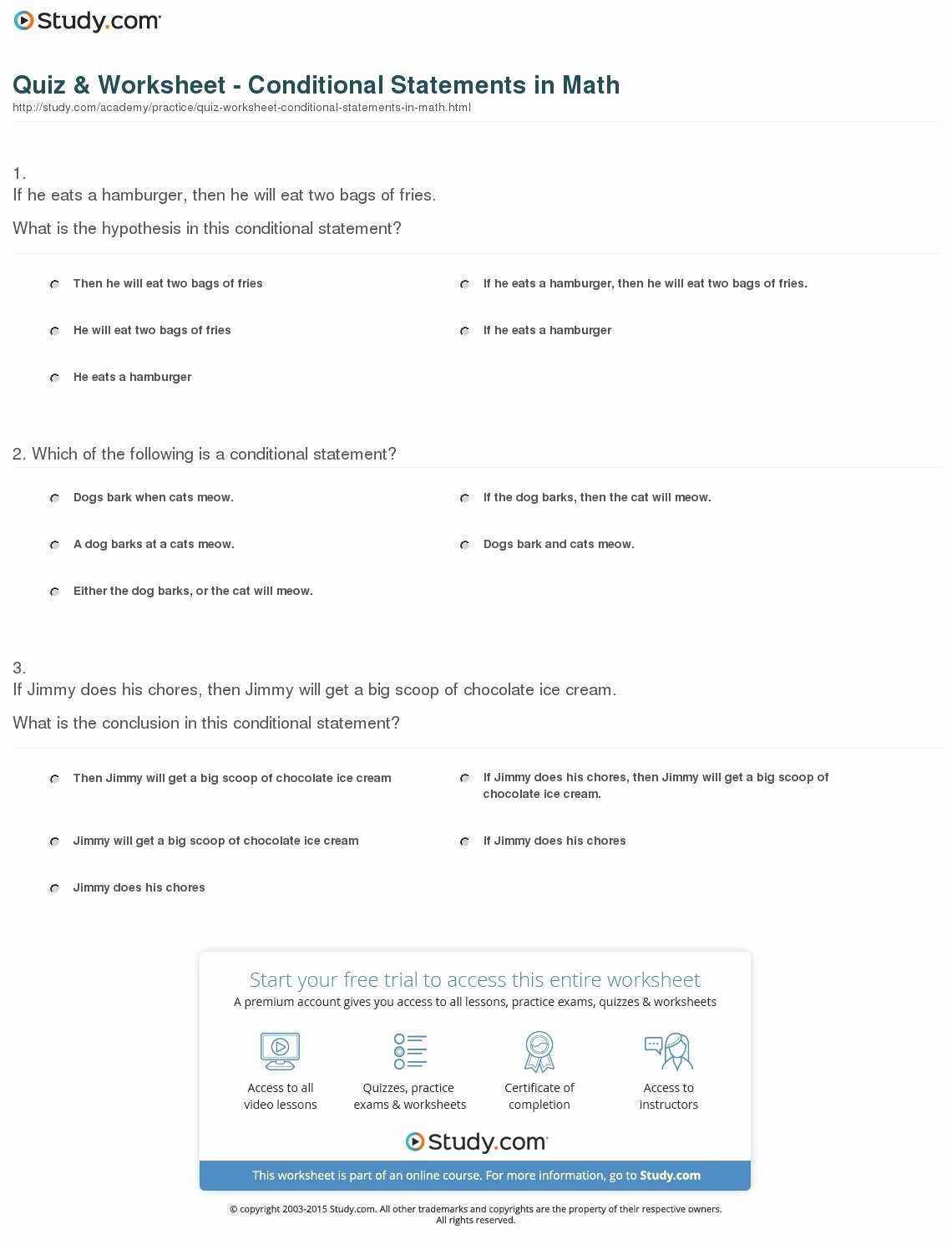 Once the student has a good grasp of the basics, they can move onto more complex worksheets. These should include a variety of problems, such as using multiple variables and multiple conditions. The student should be asked to identify the hypothesis and conclusion for each equation, as well as the conditions needed for the statement to be true.